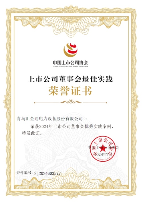 2024年11月12日,中國(guó)上市公司協(xié)會(huì)發(fā)布“2024上市公司董事會(huì)最佳實(shí)踐案例”評(píng)選結(jié)果,匯金通榮獲“2024年上市公司董事會(huì)優(yōu)秀實(shí)踐案例”。