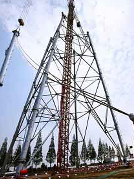 本工程是我公司參與設(shè)計(jì)制造的220kv雙回+110kv雙回的四管組合塔。